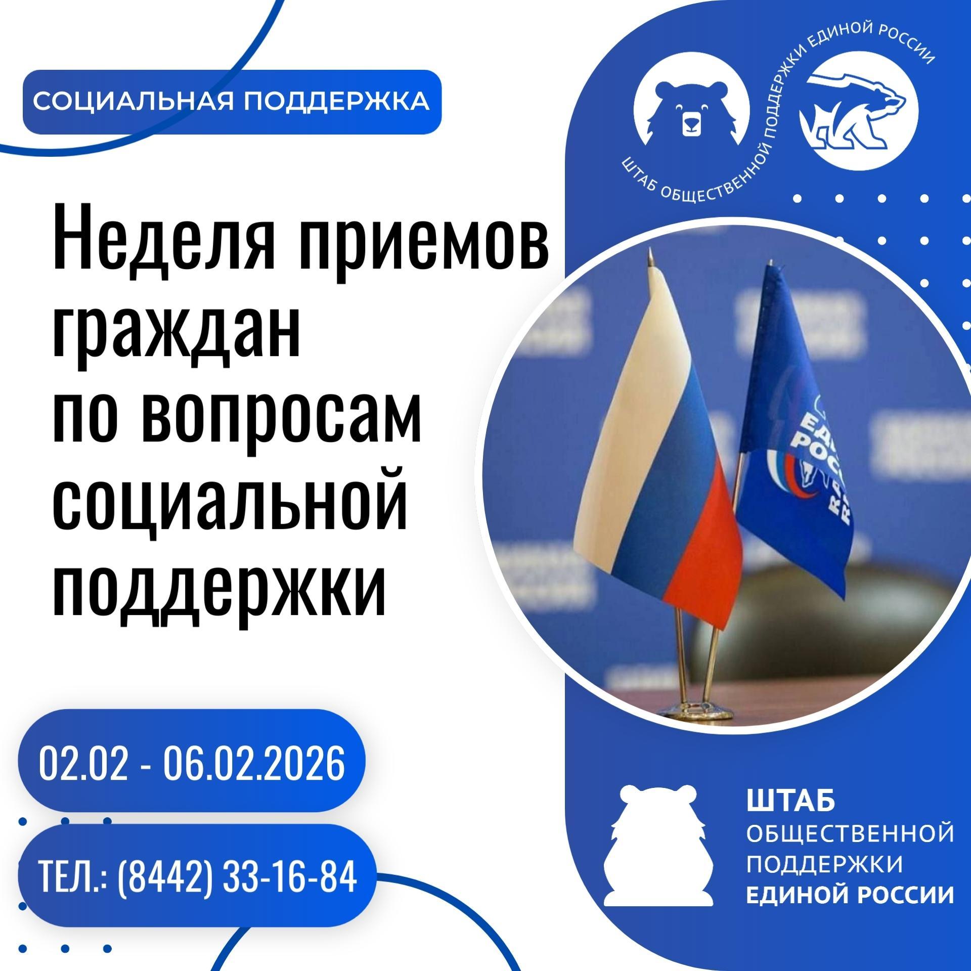 С 2 по 6 февраля «Единая Россия» проведет Неделю приемов граждан по вопросам социальной поддержки на площадках партии в Волгоградской области.