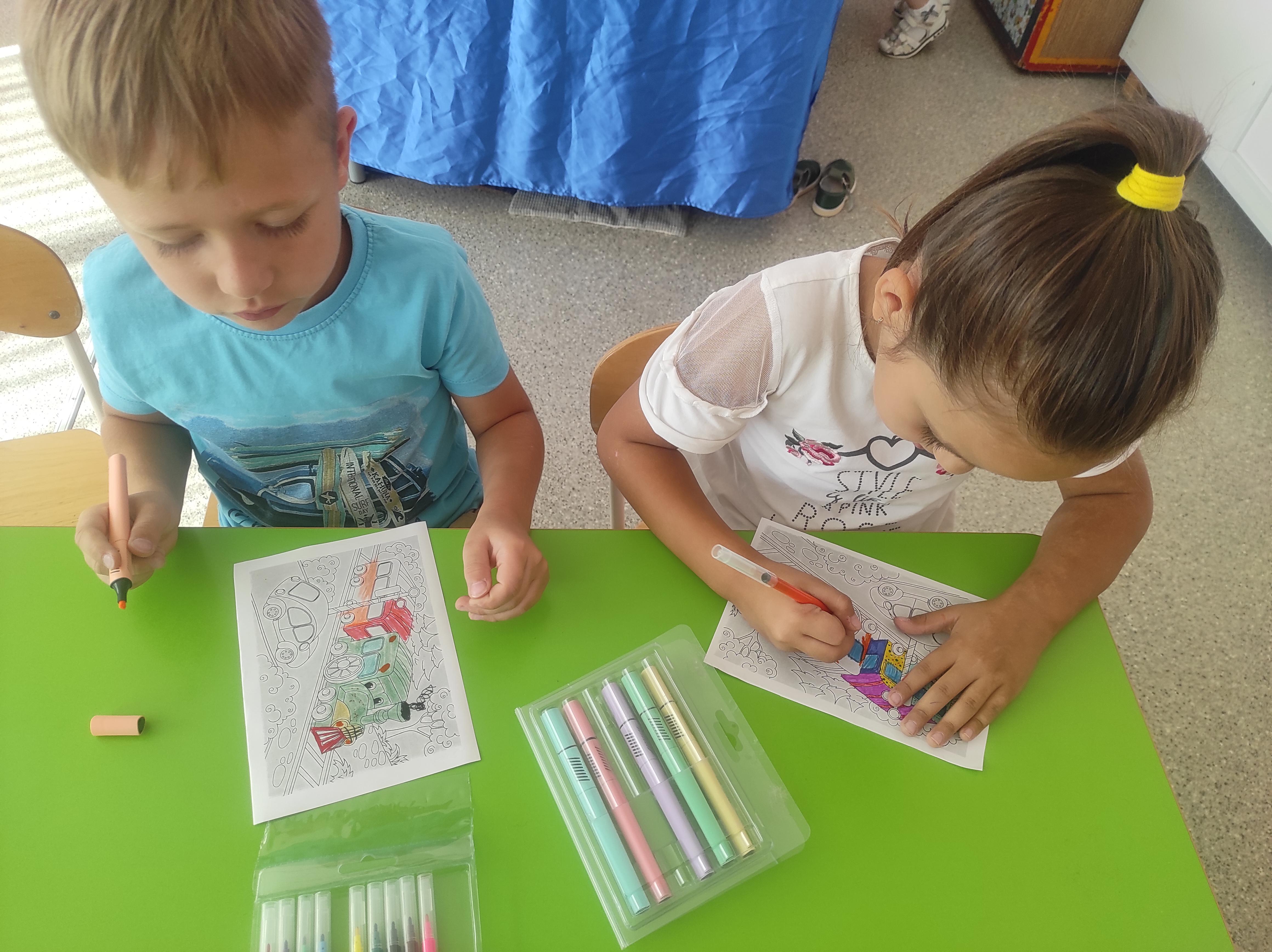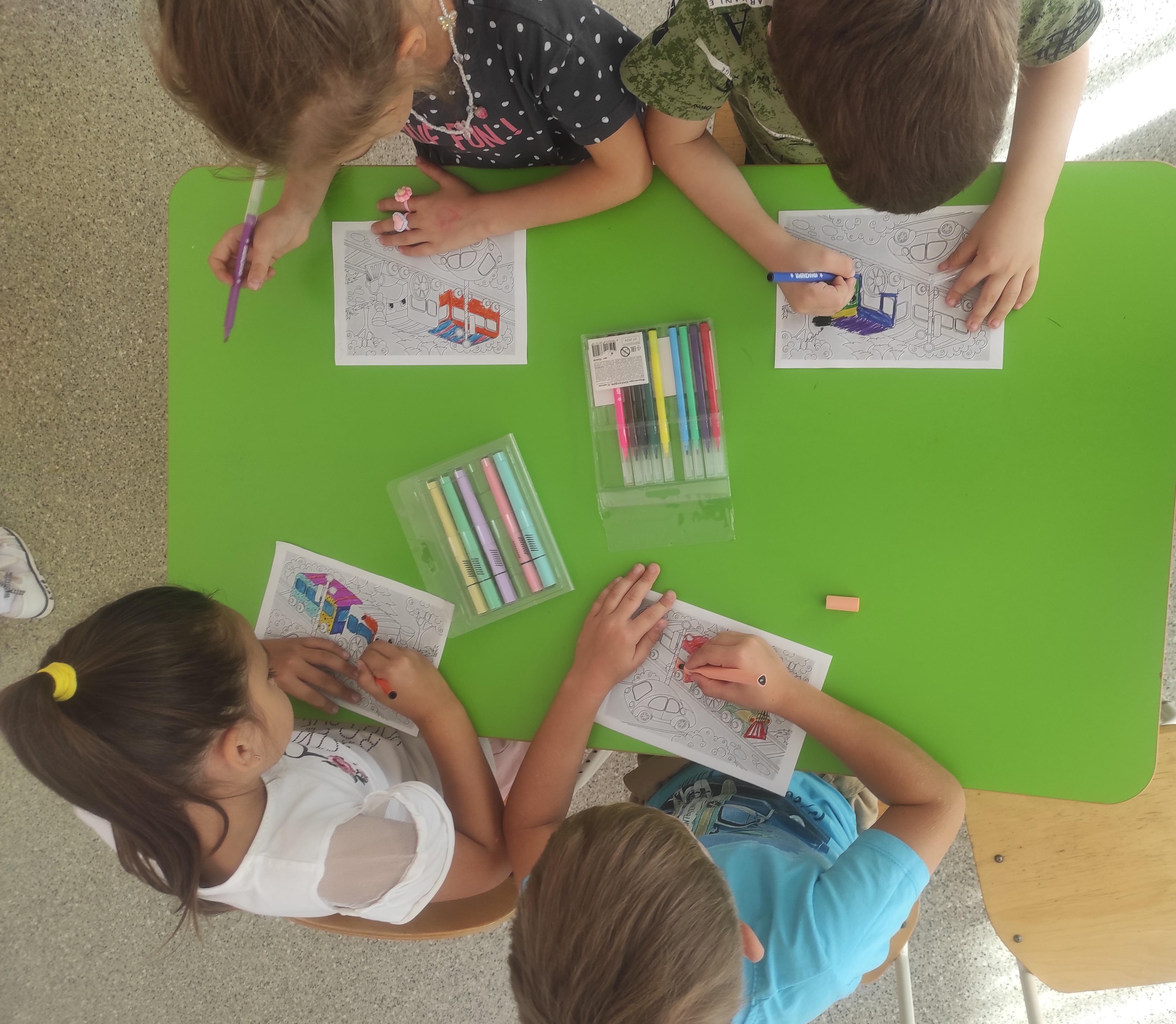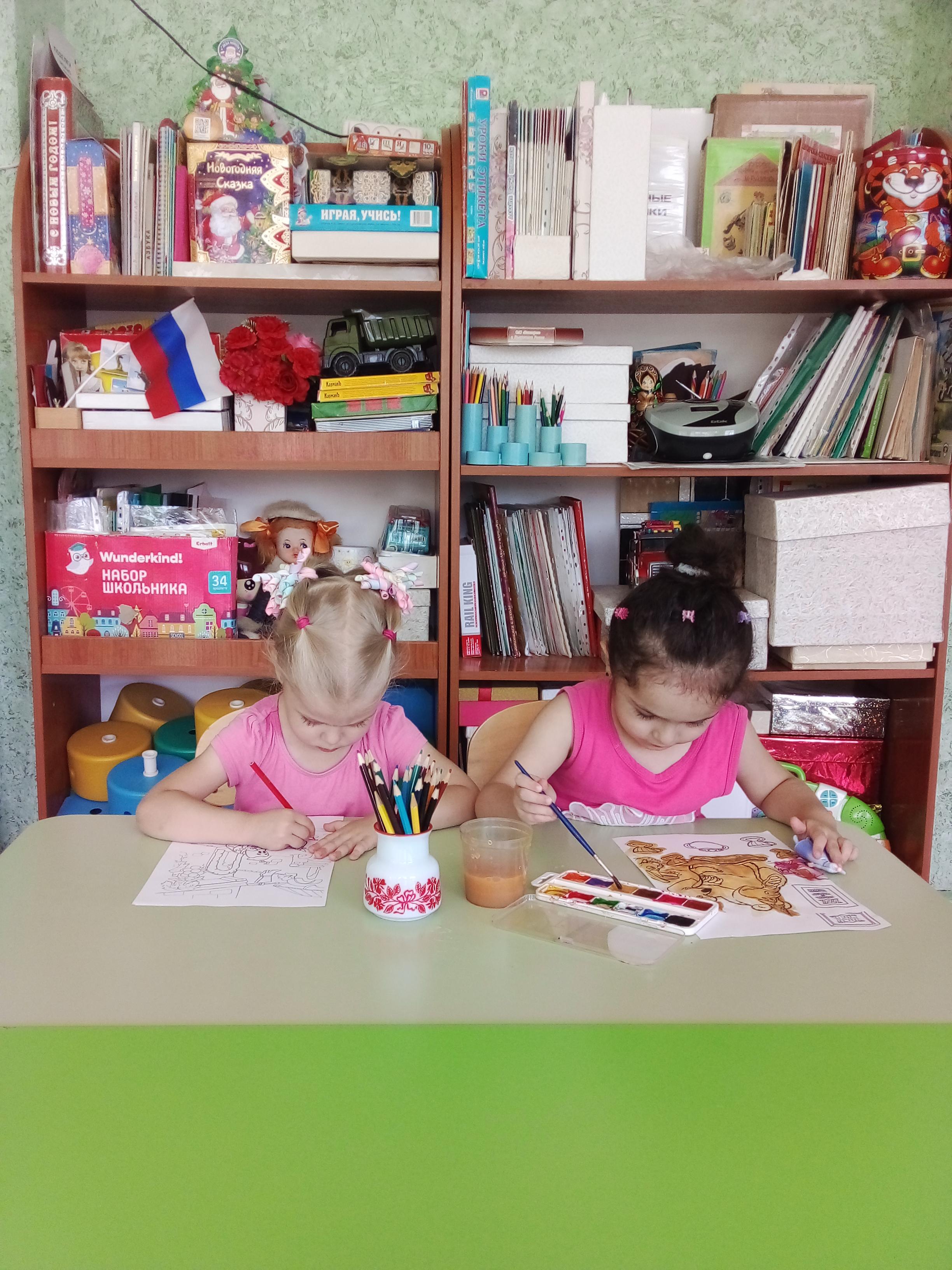 пазлы кита и дельфина и, конечно, творили: раскрашивали китов в открытом море и