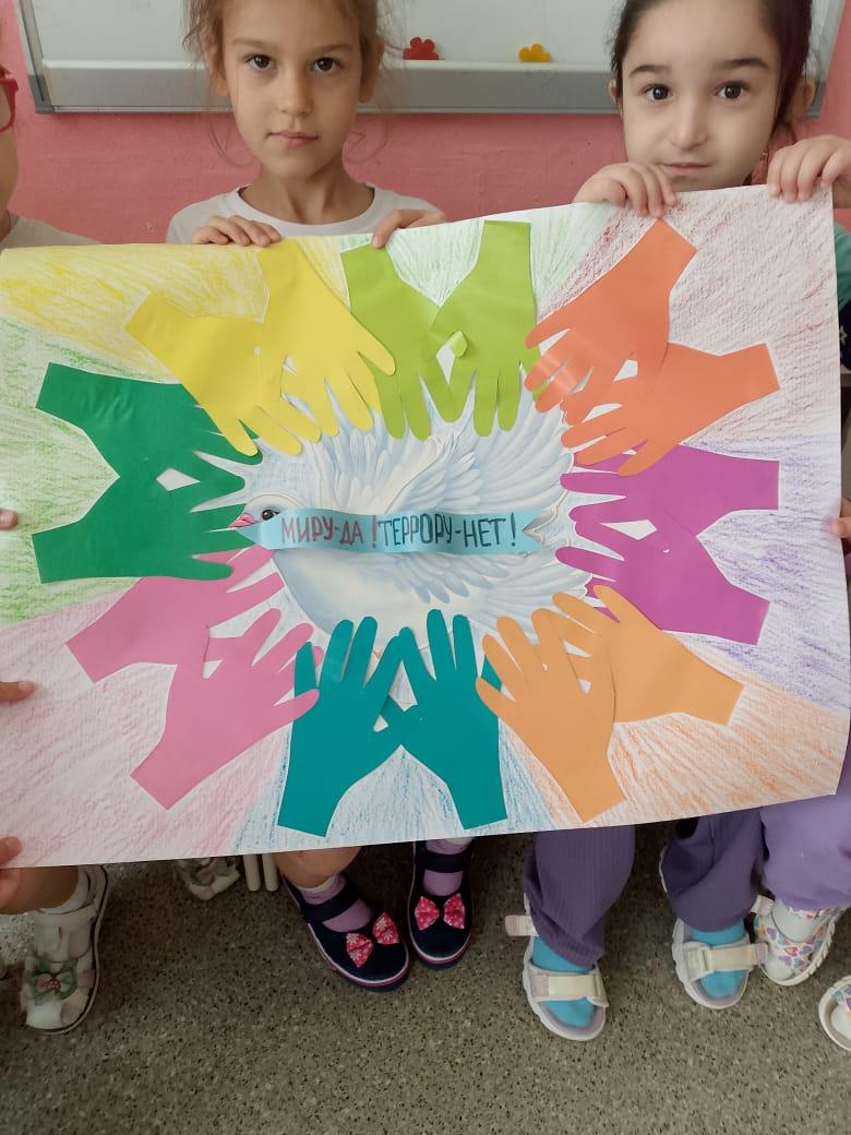 яркий коллаж на тему «Миру- да , террору- нет!», выразив своё стремление жить в