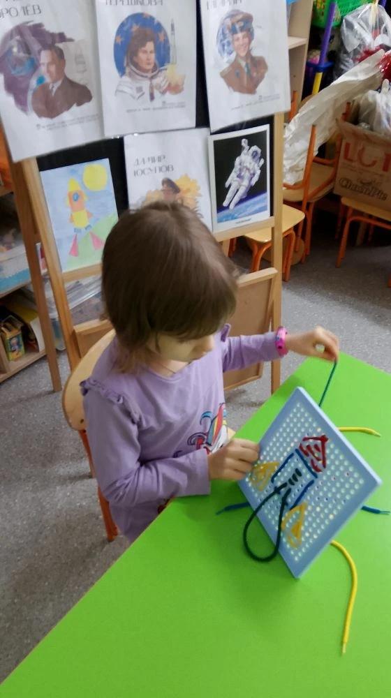 Герои страны: Юрий Гагарин- герой СССР, первый в мире лётчик- космонавт; Дамир Юсупов- герой России, лётчик гражданской авиации; Валентина Терешкова- герой СССР, первая в мире женщина- космонавт; Сергей Королёв- великий советский конструктор ракетно- космических систем вдохновили воспитанников на разные виды детской деятельности, связанные с космосом. Дети с большим интересом слушали рассказы о героях космического и воздушного пространства, о главном конструкторе Сергее Королёве, космических кораблях и ракетах, созданных им. Дети самостоятельно возводили ракеты из конструктора «Лего», собирали пазлы, создавали рисунки, раскрашивали альбомы данной тематики. Совместная деятельность педагога с детьми позволила расширить представления воспитанников о вкладе наших героев в развитие космоса.
